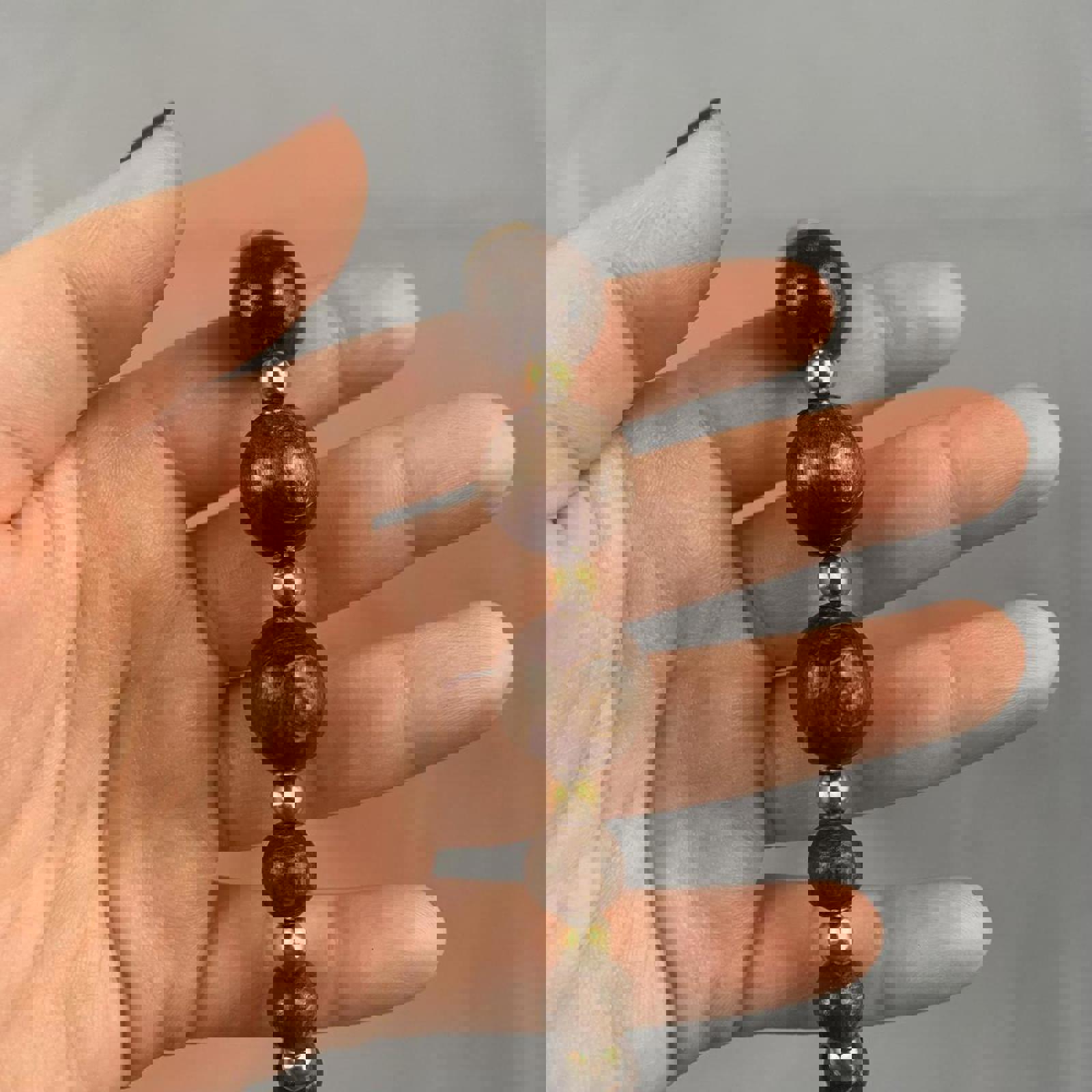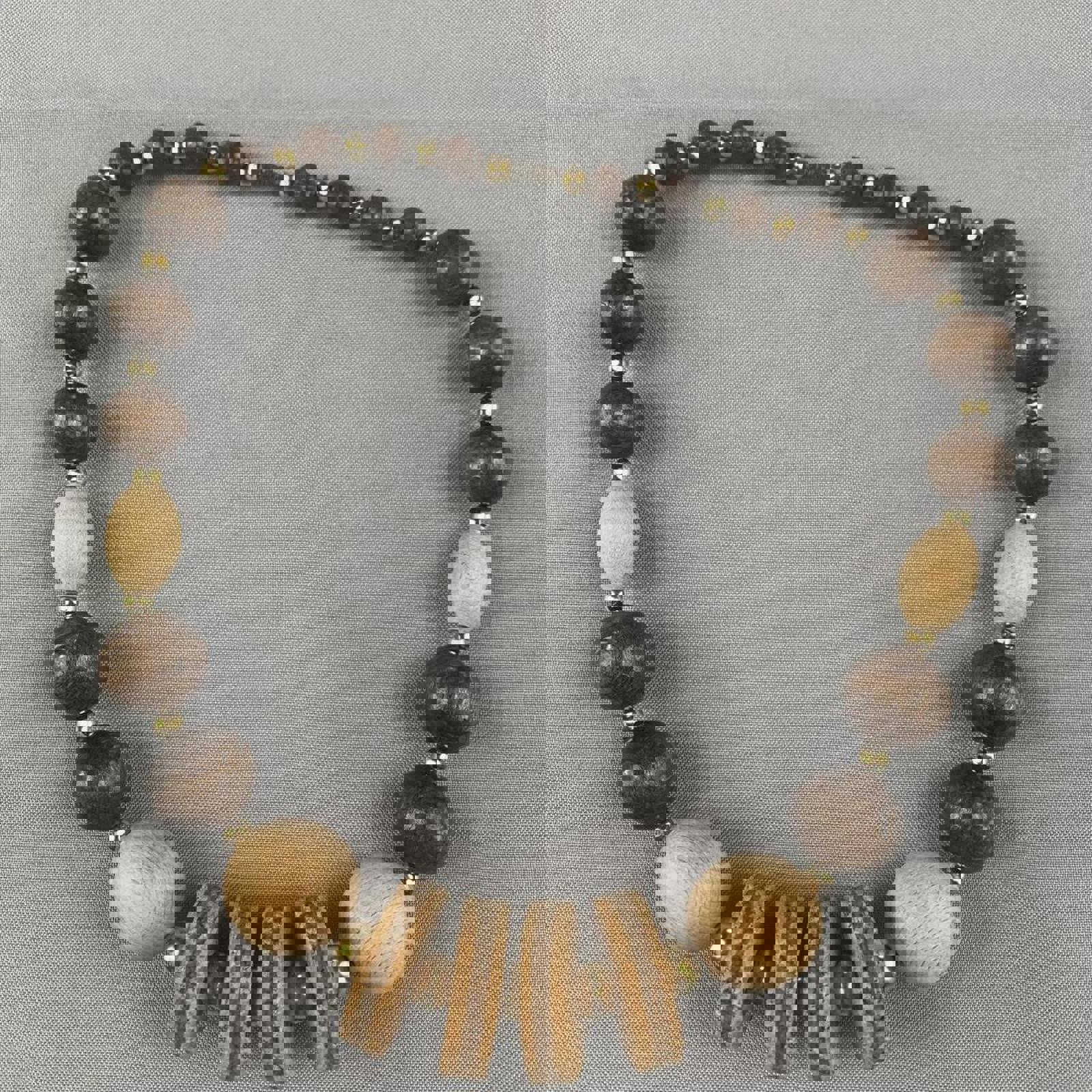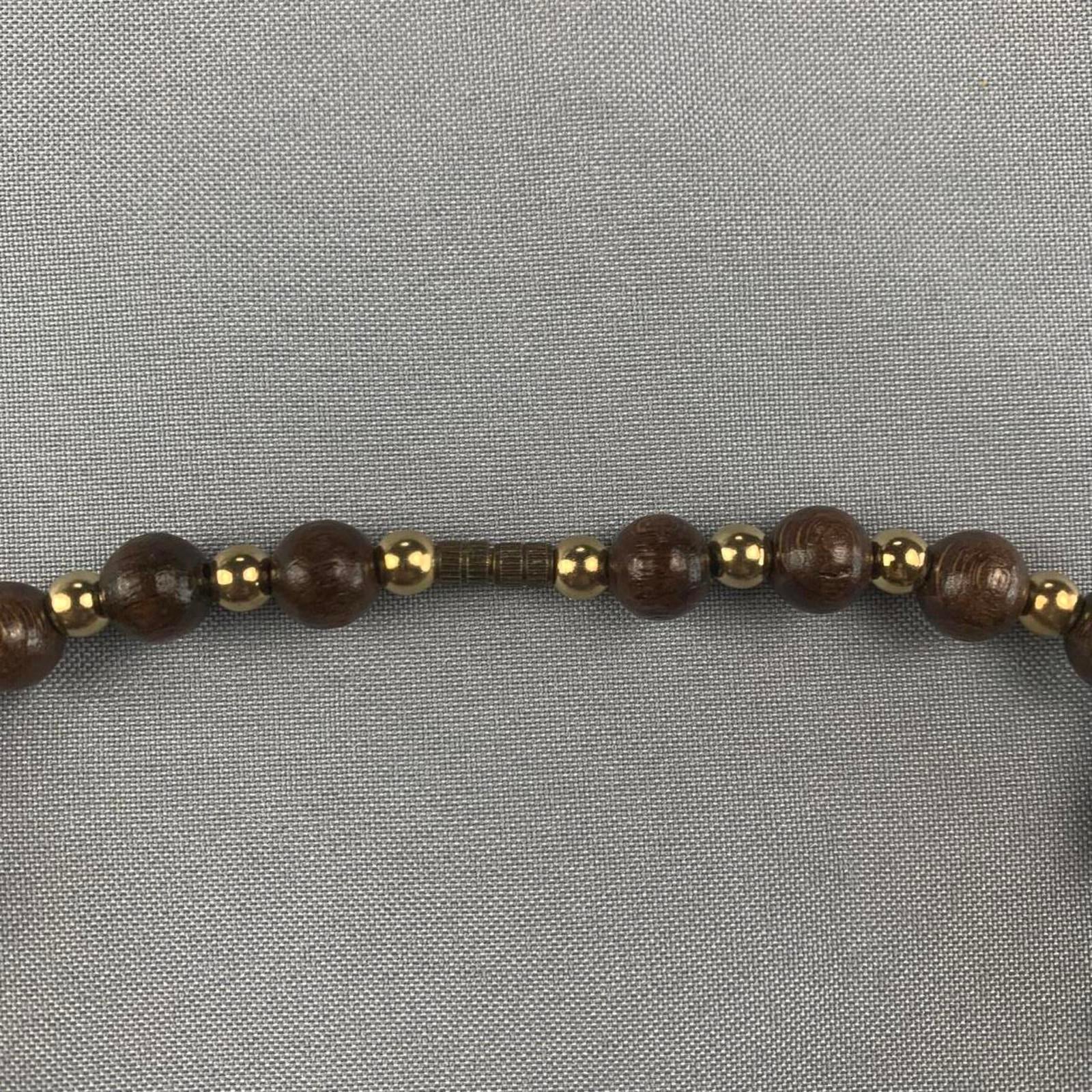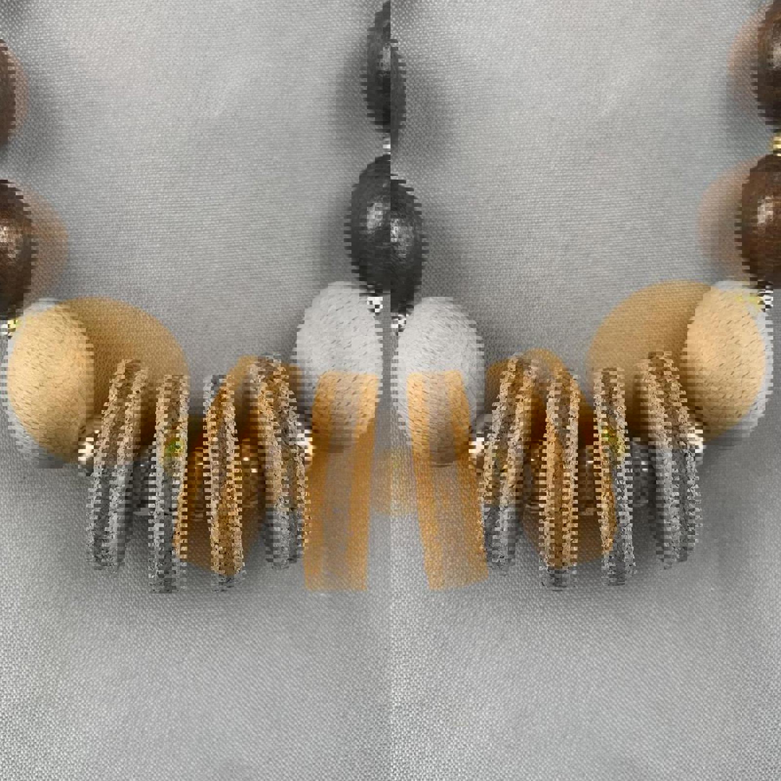Cork and Chunky Wooden Beaded Necklace (~24cm length)