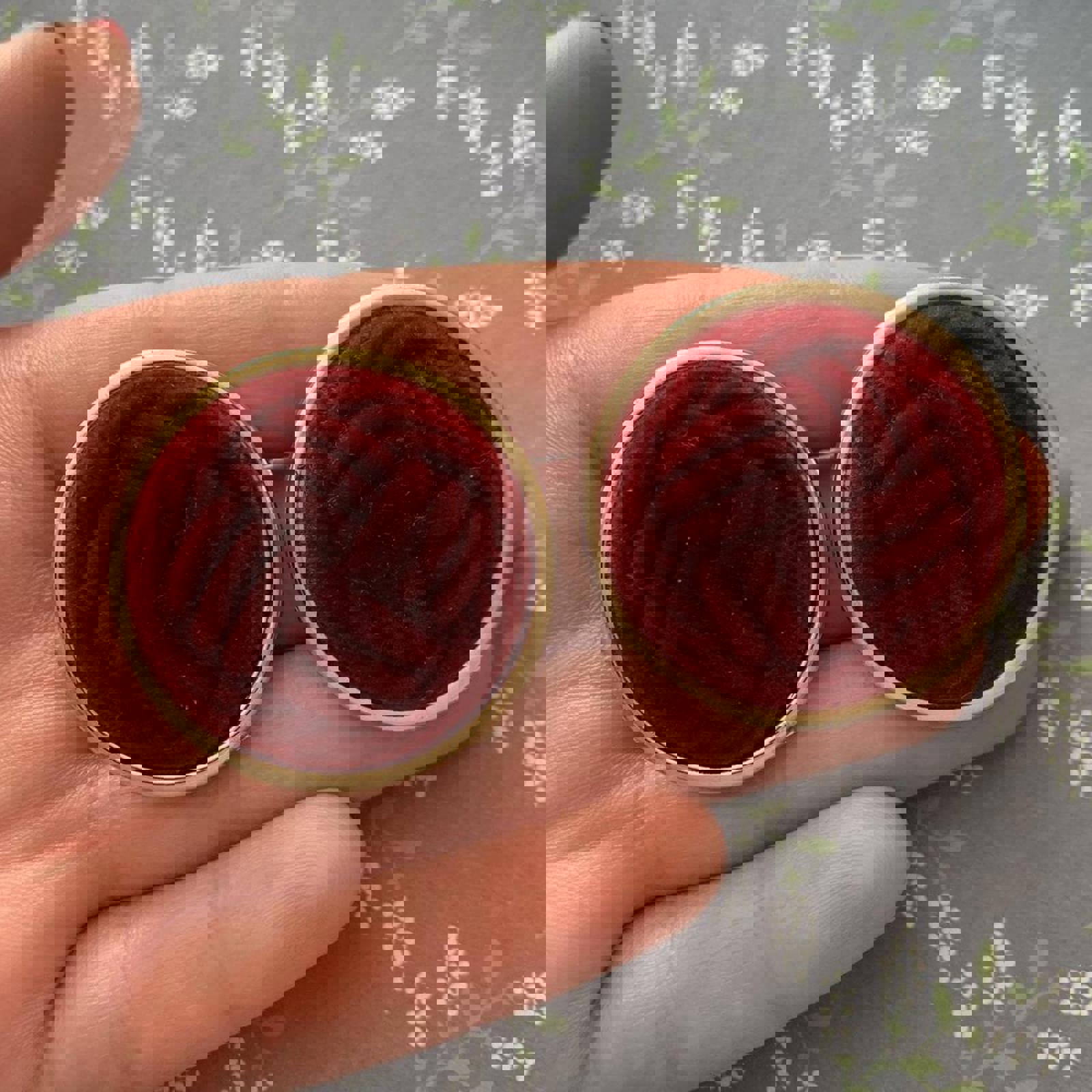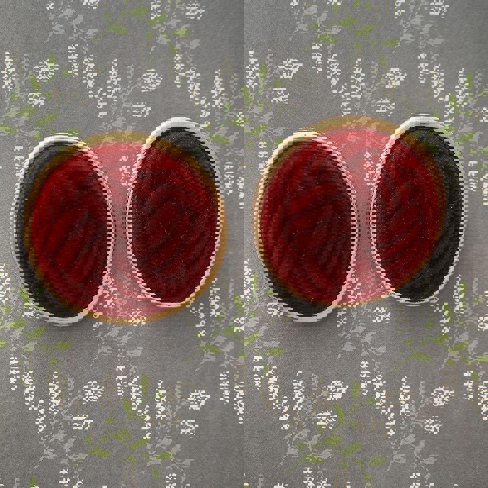 Vintage Clip on earrings in burgundy velvet with a timeless knot embossed design - measuring approximately 33 x 33 x 15mm - these pre-loved earrings are in good condition and ready to be worn again and again.